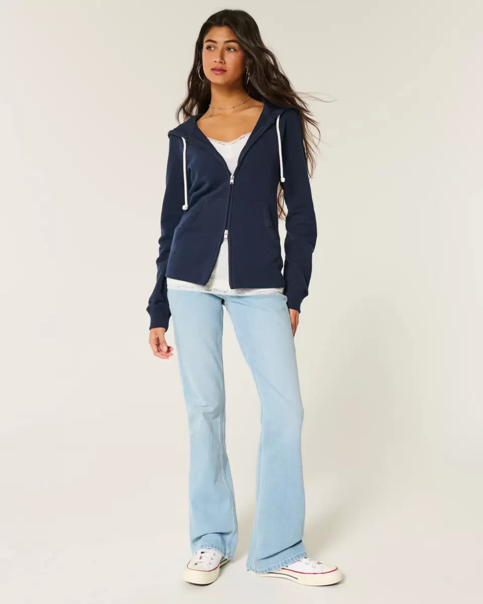 A super soft fleece hoodie with a full zip-up closure, hood, and long sleeves. Drawstring waist, front pockets, long sleeves. Slim Fit.