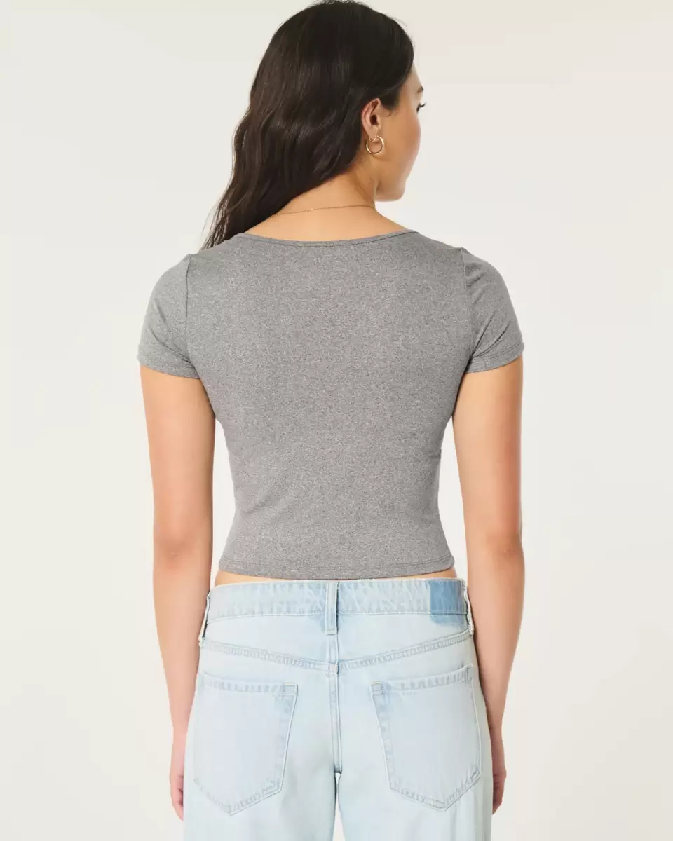 A cute and cozy baby tee in soft stretch fabric with a seamless look and feel. Designed with a slightly shrunken silhouette, square neckline and short sleeves. Slim Fit. Imported.