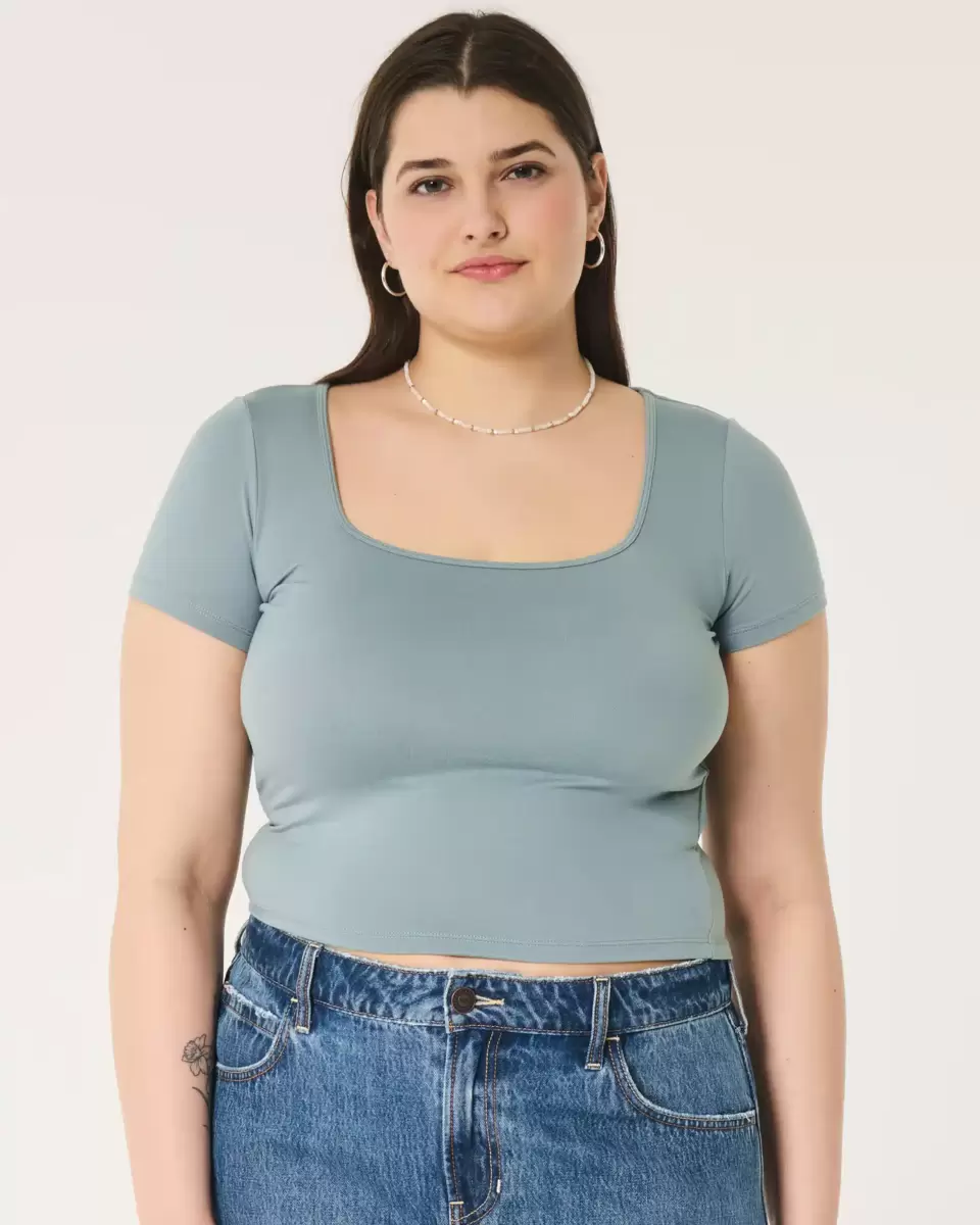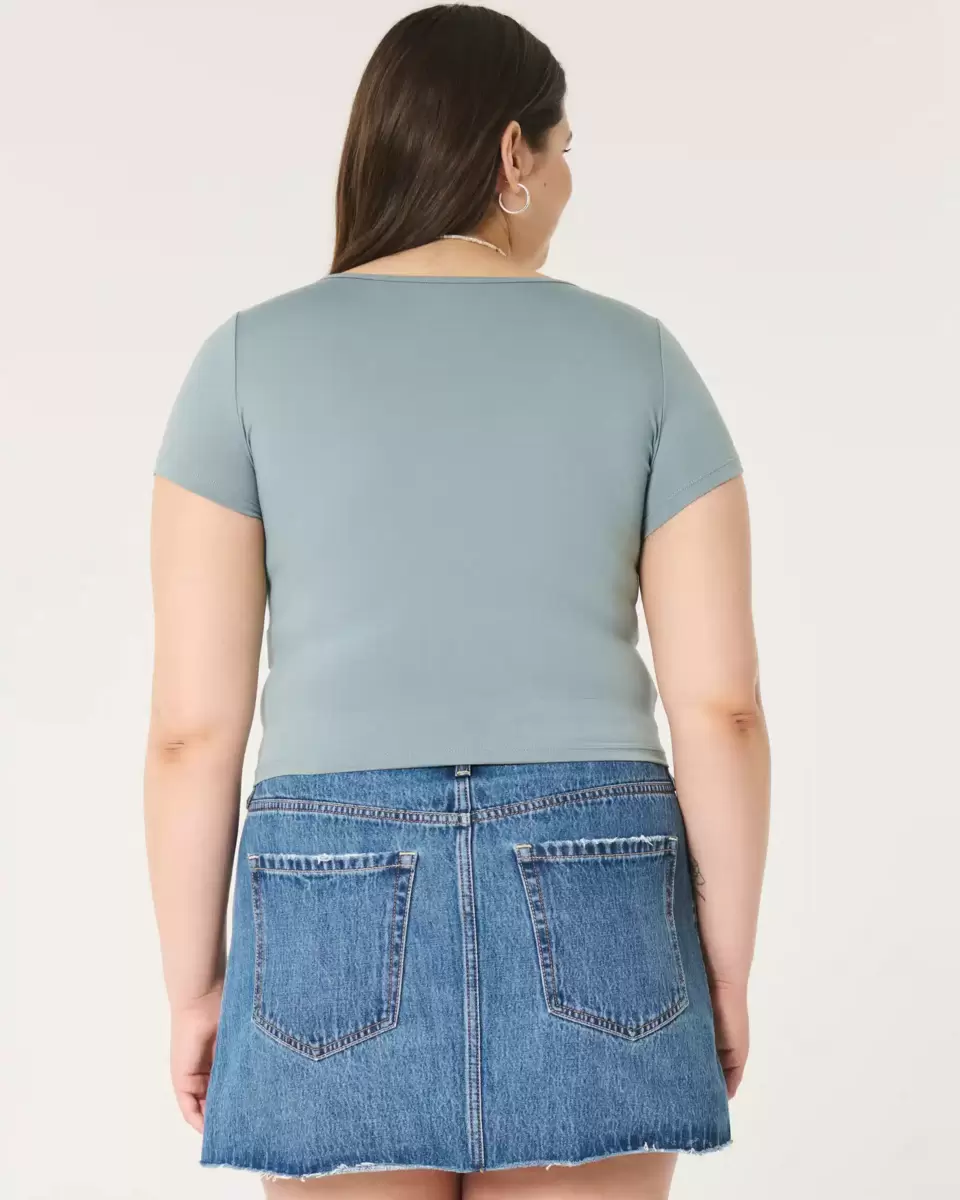 A comfy baby tee in soft stretch fabric made with a seamless look and feel. Square neckline, short sleeves. Slim Fit. Imported.