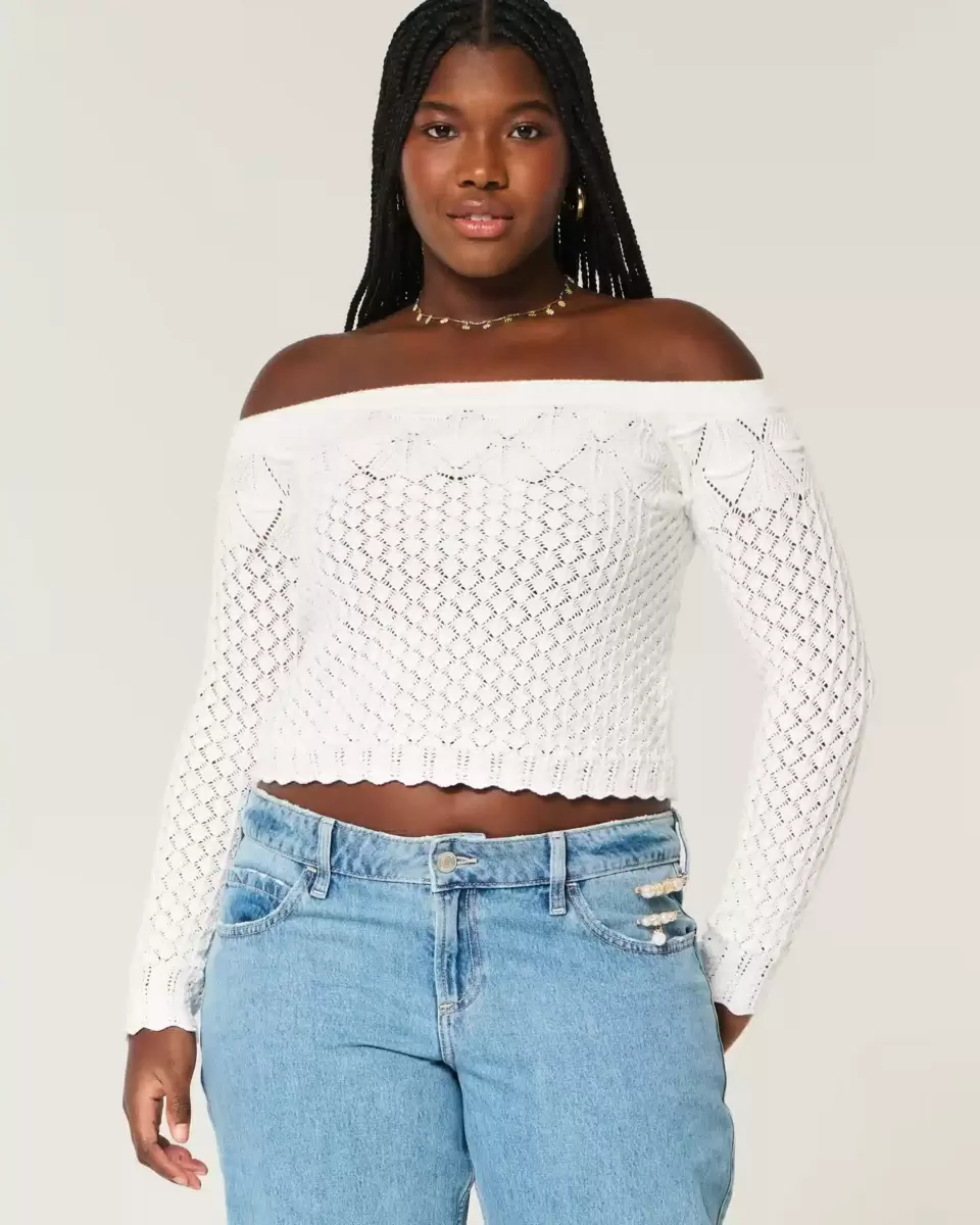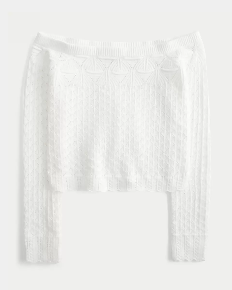 Stitchy Crochet-Style Off-the-Shoulder Sweater
