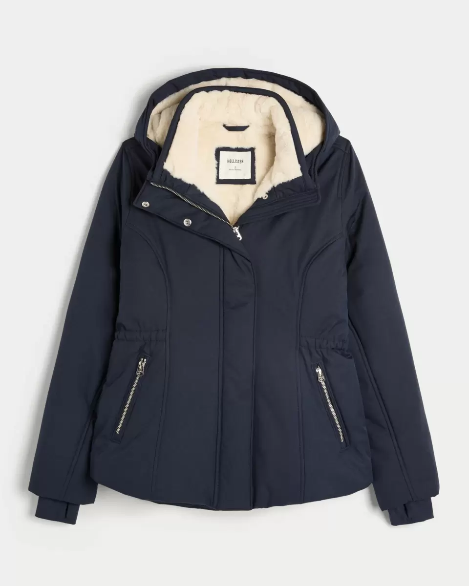 Your new favorite jacket features super soft faux fur lining, a full zip-up closure with snaps and front zipper pockets. Hood, storm cuffs with thumb openings, interior pocket.