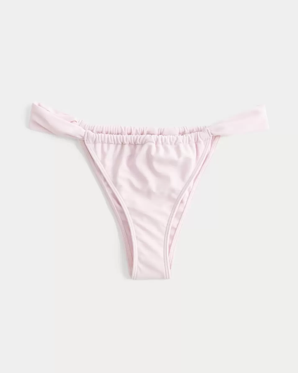 This cute bikini bottom is made with soft swim fabric and features wide straps and our cheekiest coverage. High-leg silhouette, mid-rise waist. Imported.