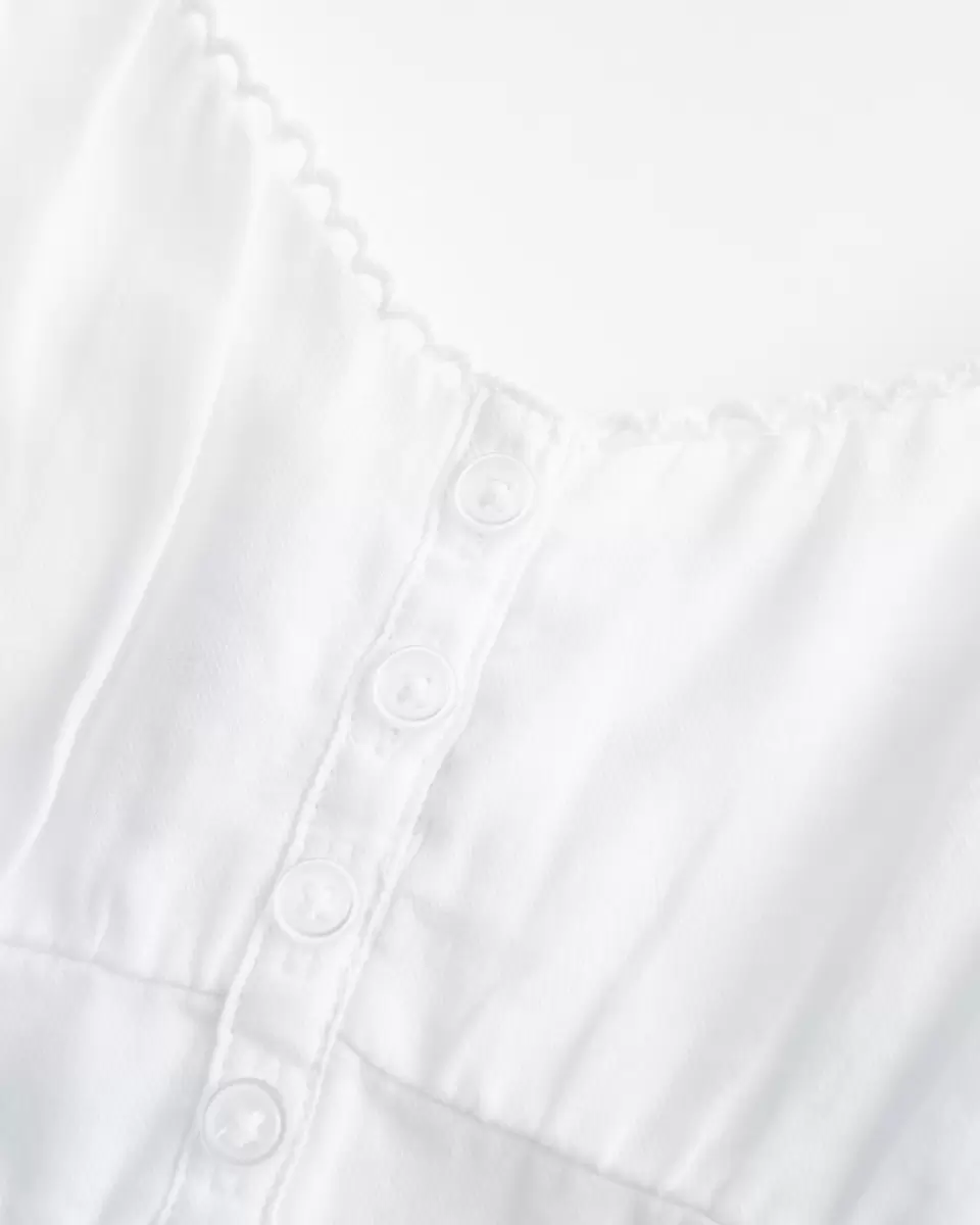Flowy and super soft, this babydoll top features center button details, scalloped trim along the neckline and a ruffled hem. Adjustable straps. Imported.