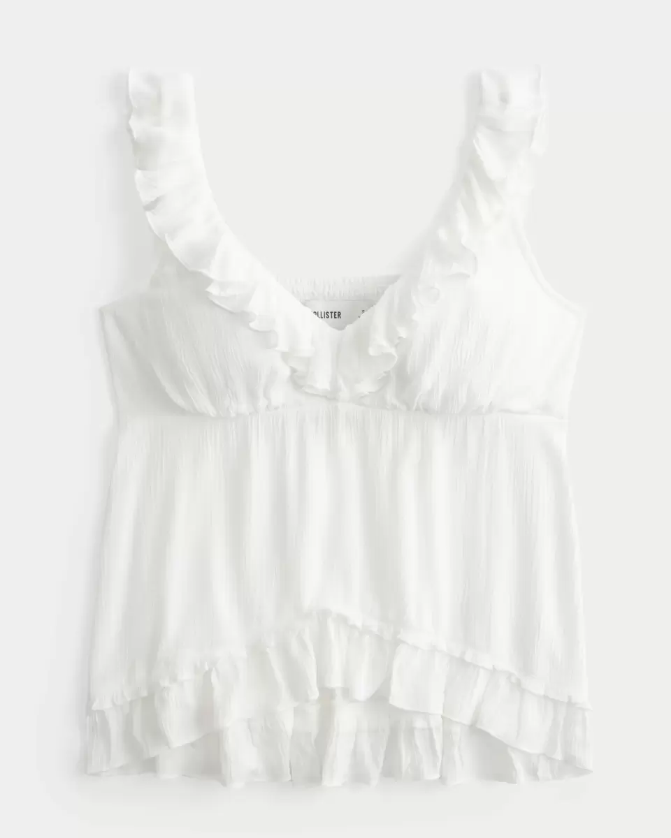 Flowy and super soft, this boho-inspired top is made with crinkle fabric and features ruffled trim and ruffled flutter strap details. Soft smocked back, looks perfect dressed up or down! Easy Fit. Imported.