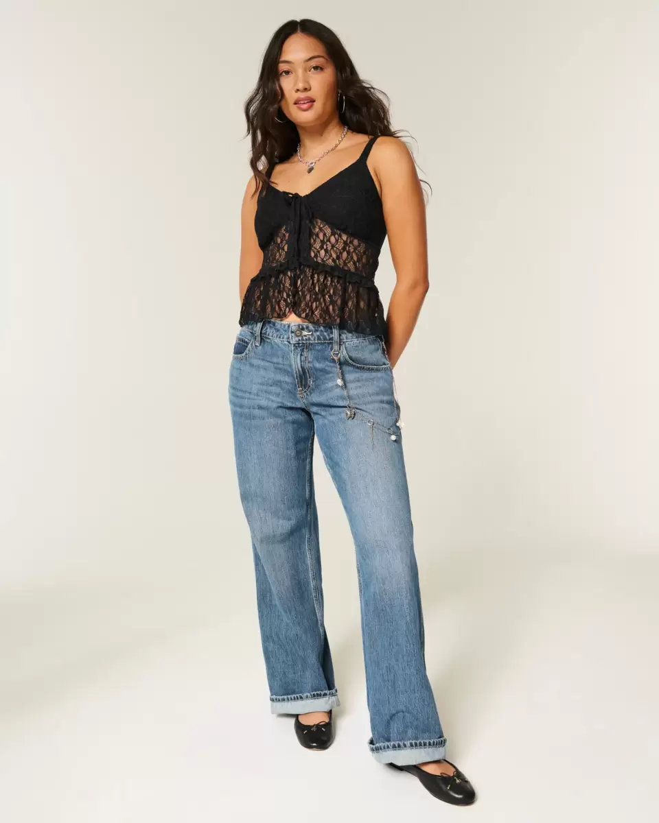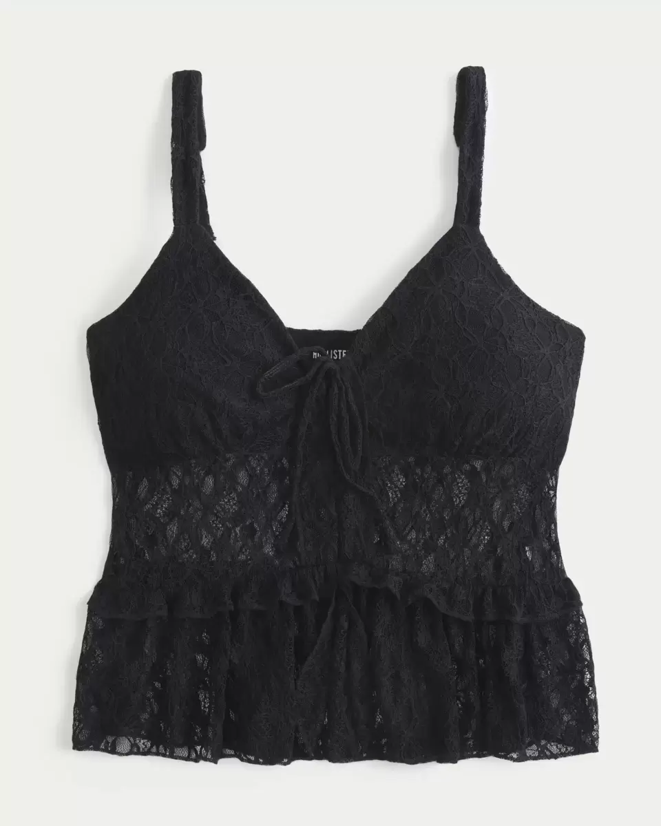 Pretty and super soft, this top features all-over lace and a tie front with subtle flyaway detail. Removable bust pads, adjustable straps, looks perfect dressed up or down! Slim Fit. Imported.