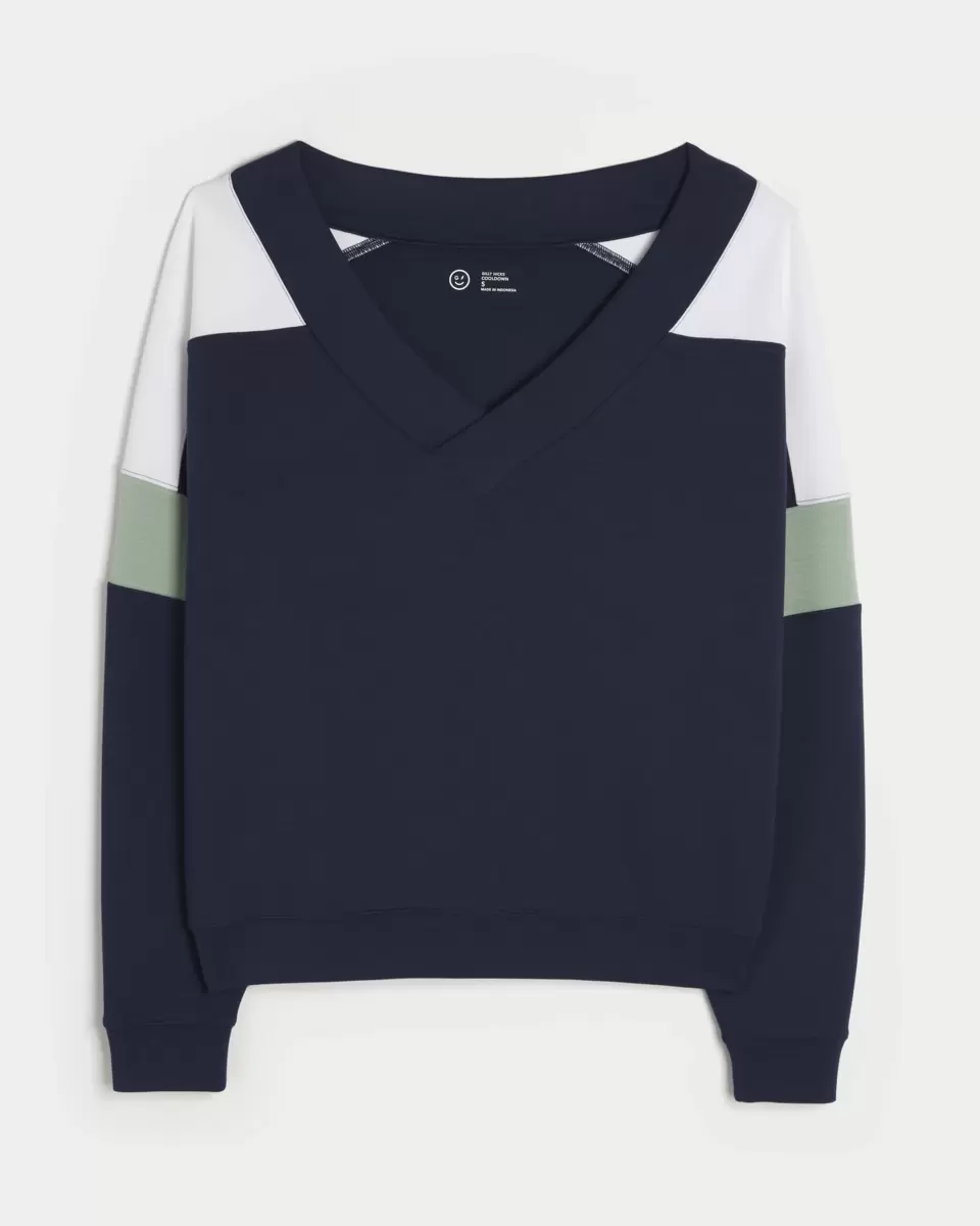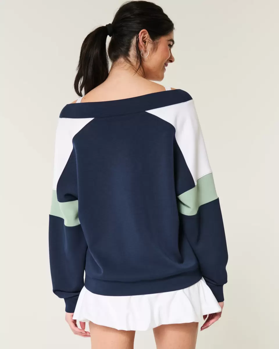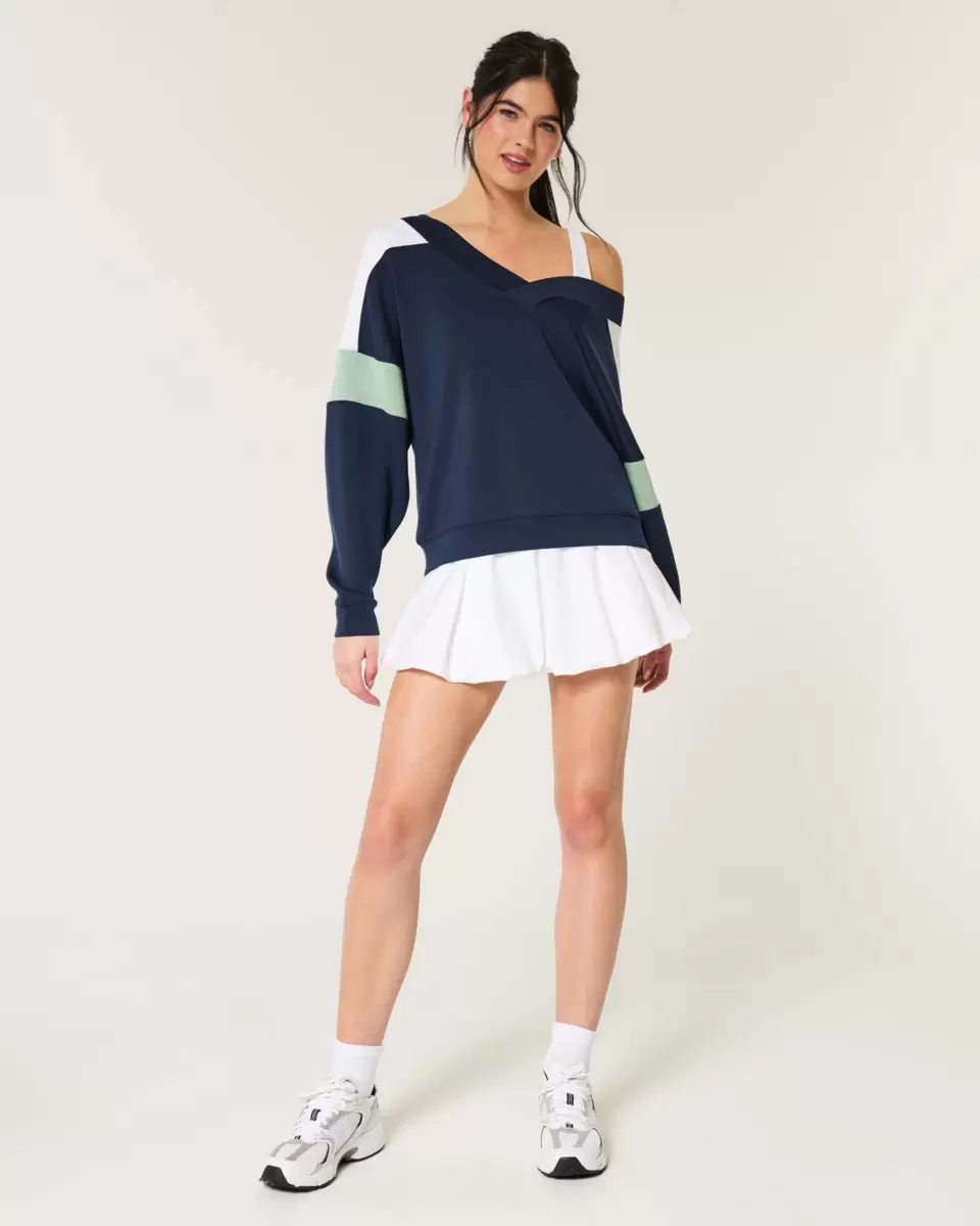An unbelievably cute and comfy long-sleeve top made with our super soft Cooldown fabric. Off-the-shoulder v-neckline.