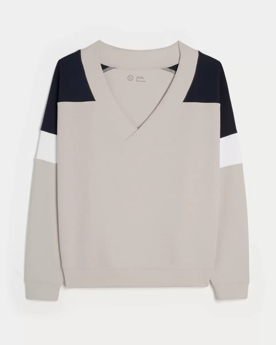 An unbelievably cute and comfy long-sleeve top made with our super soft Cooldown fabric. Off-the-shoulder v-neckline.