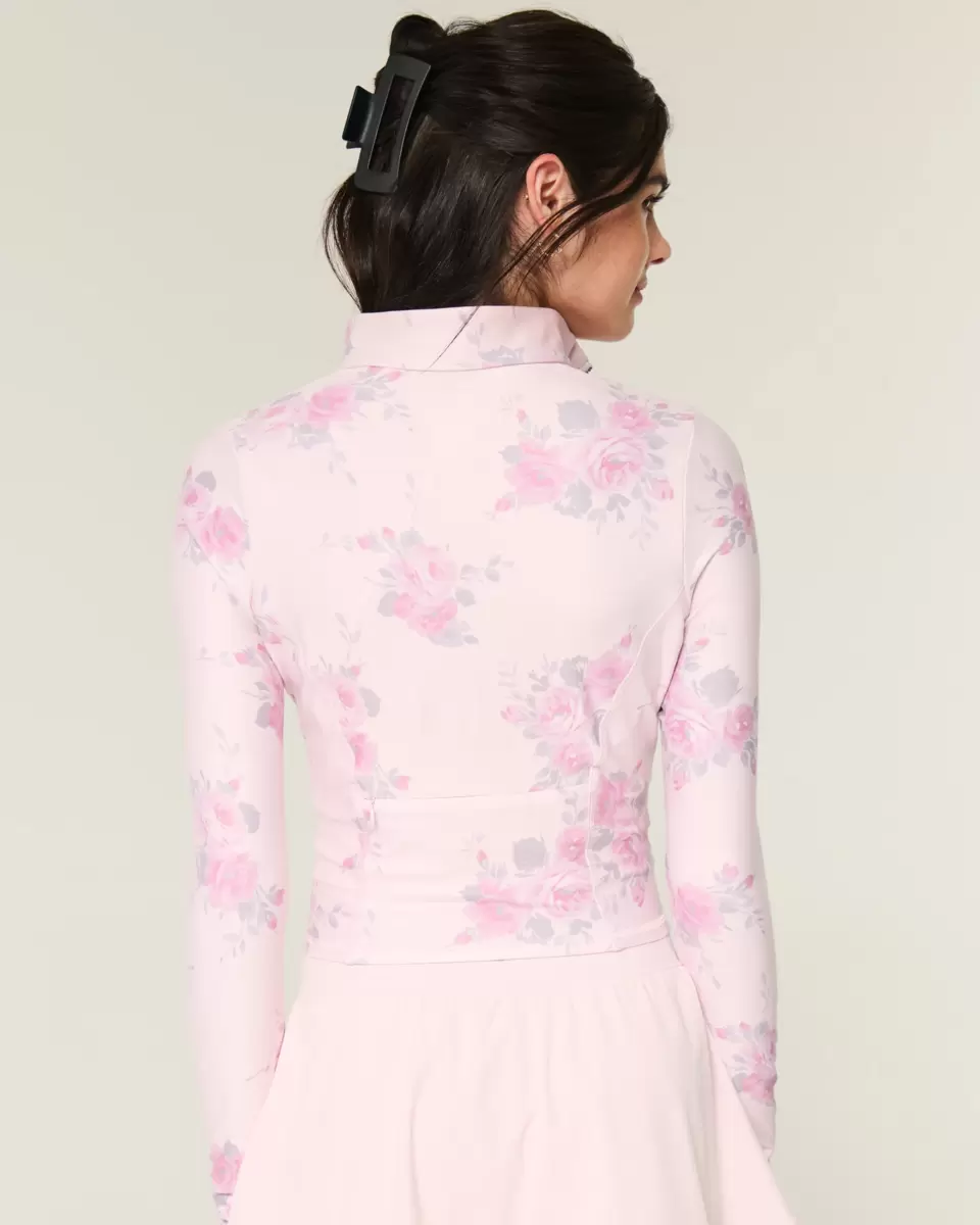 Designed in our breathable, 4-way stretch, moisture-wicking Recharge fabric with a super soft, brushed feel. Dual zipper closure, front pockets, long sleeves with ruched detailing and thumb openings. Slim Fit. Imported.