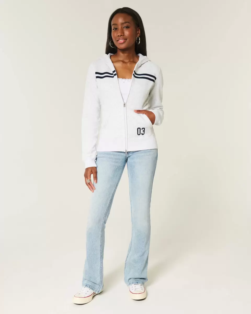 A super soft fleece hoodie featuring chest stripes and a sporty number detail at the pocket. Full zip-up closure, long sleeves, front pockets, hood. Slim Fit. Imported.