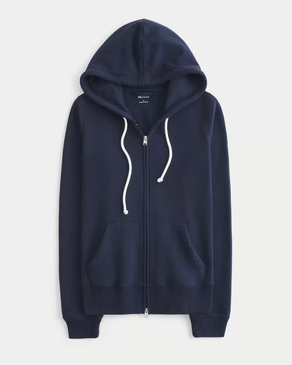 A super soft fleece hoodie with a full zip-up closure, front pockets and drawstring hood. Long sleeves. Slim Fit. Imported.