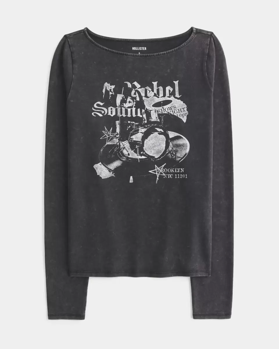Brooklyn Music Graphic Slash-Neck Top