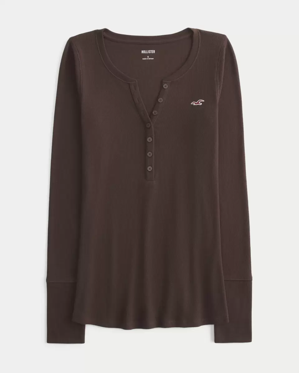 Cozy and super soft, this longer-length henley features a button placket and embroidered left chest logo icon. Long sleeves. Slim Fit. Imported.
