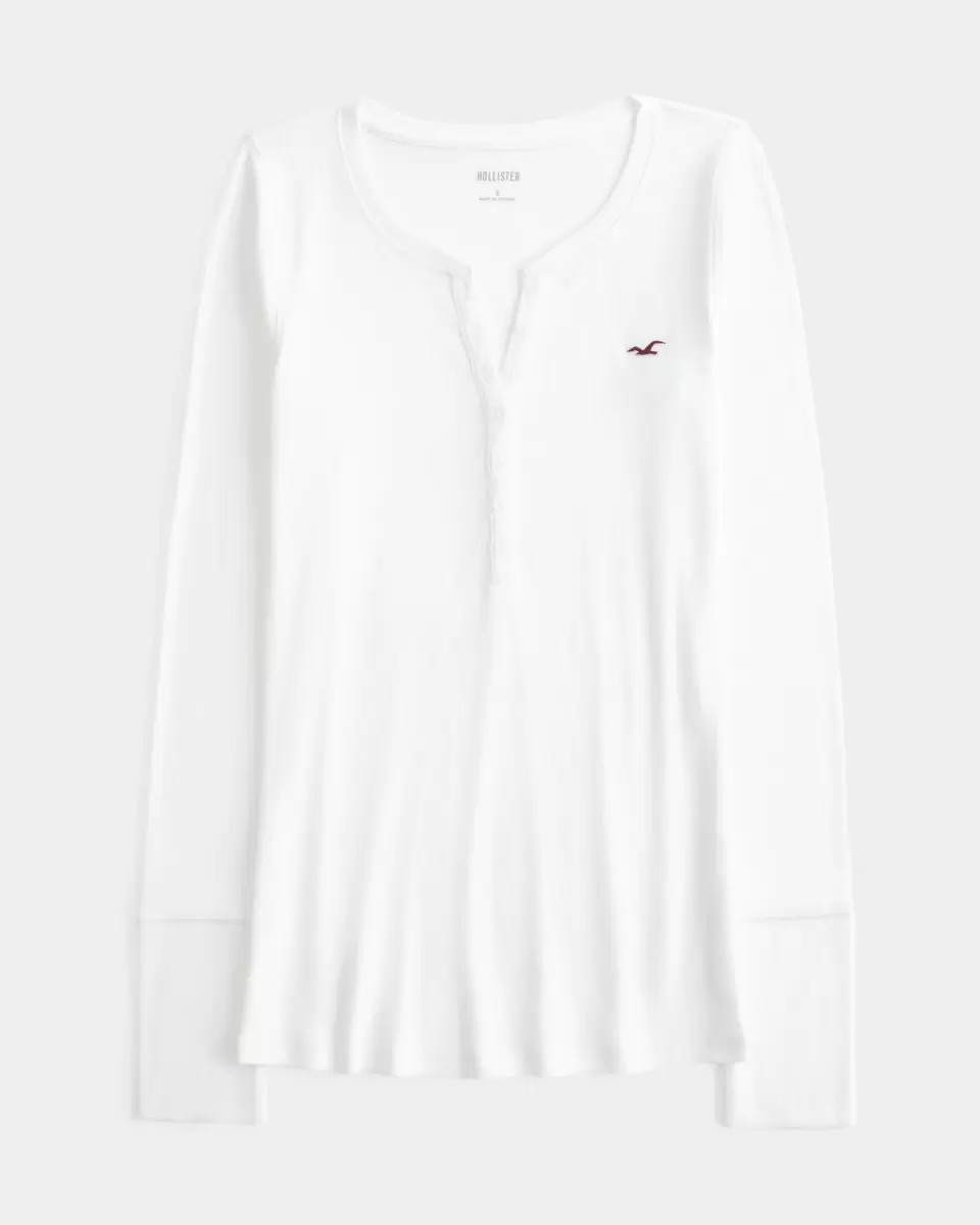 Cozy and super soft, this longer-length henley features a button placket and embroidered left chest logo icon. Long sleeves. Slim Fit.