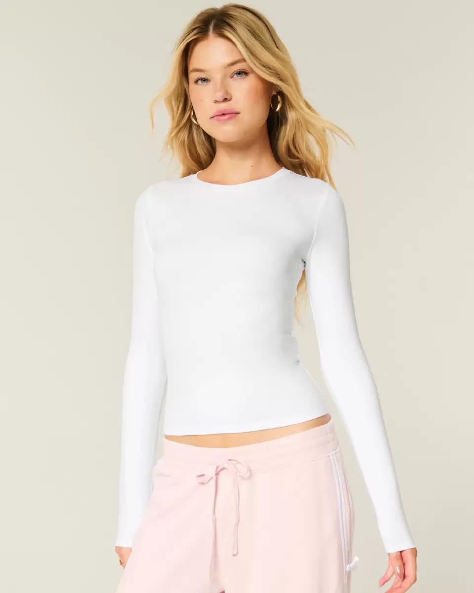 This cozy top is made with super soft fabric with a seamless look and feel. Crew neckline, long sleeves. Slim Fit.