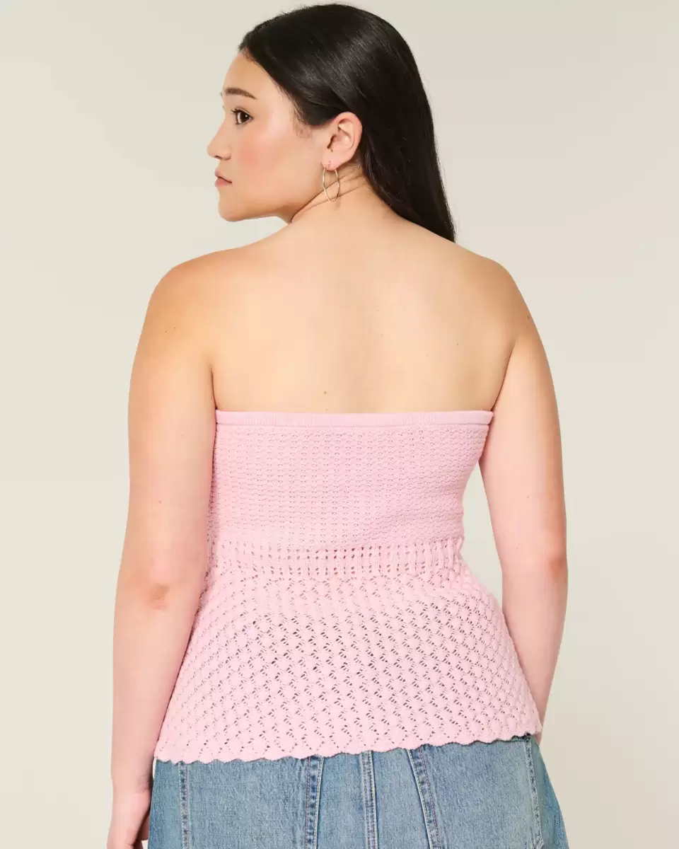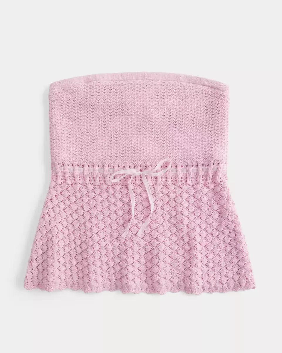 Cozy and super soft, this tube top features crochet-style patterns and a tie detail through the waist. Strapless. Imported.
