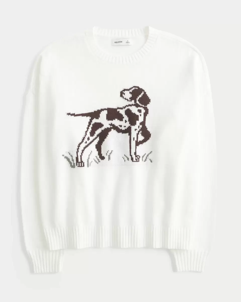 This cozy and super soft sweater features a dog intarsia graphic. Crew neckline, long sleeves, ribbed trims. Easy Fit. Imported.