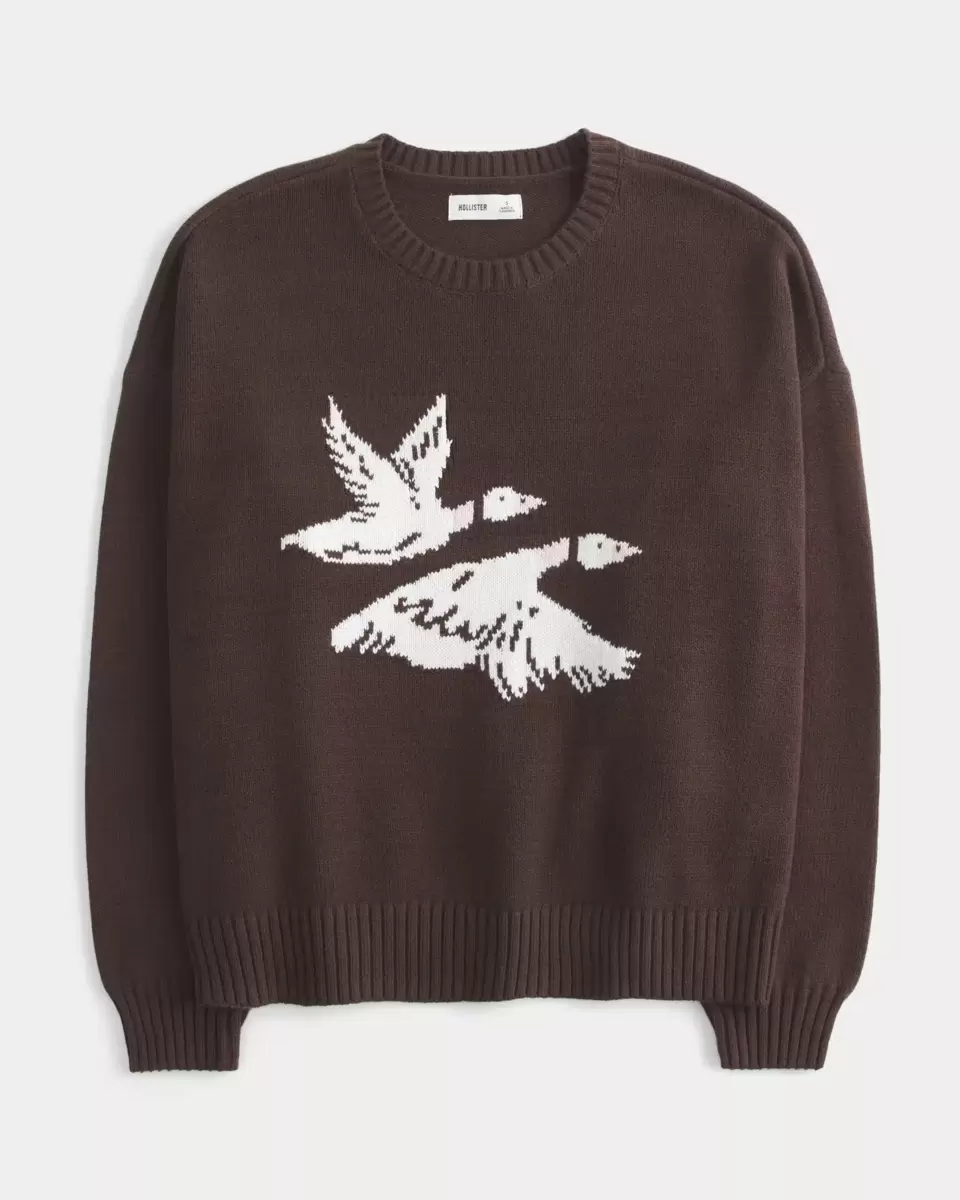 This cozy and super soft sweater features a flying birds intarsia graphic. Crew neckline, long sleeves, ribbed trims. Easy Fit. Imported.