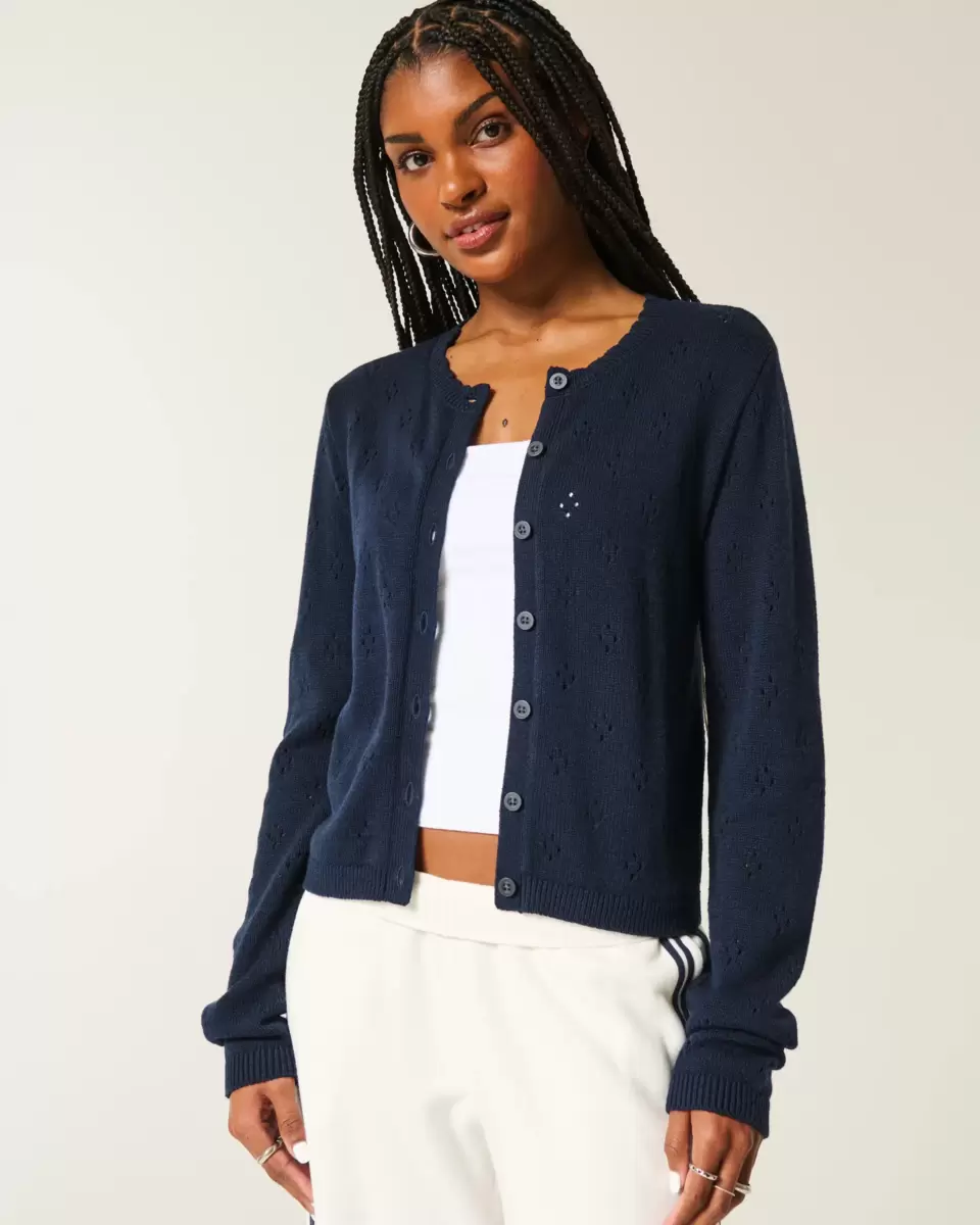 Eyelet Crew Cardigan