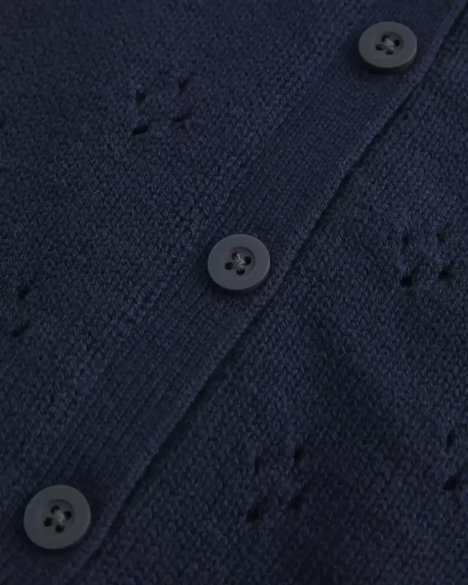 A cozy and super soft cardigan with pretty all-over eyelett patterns and a scalloped crew neckline. Full button closure, ribbed trims, long sleeves.