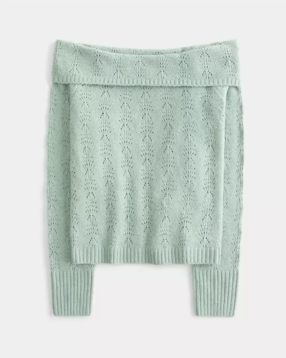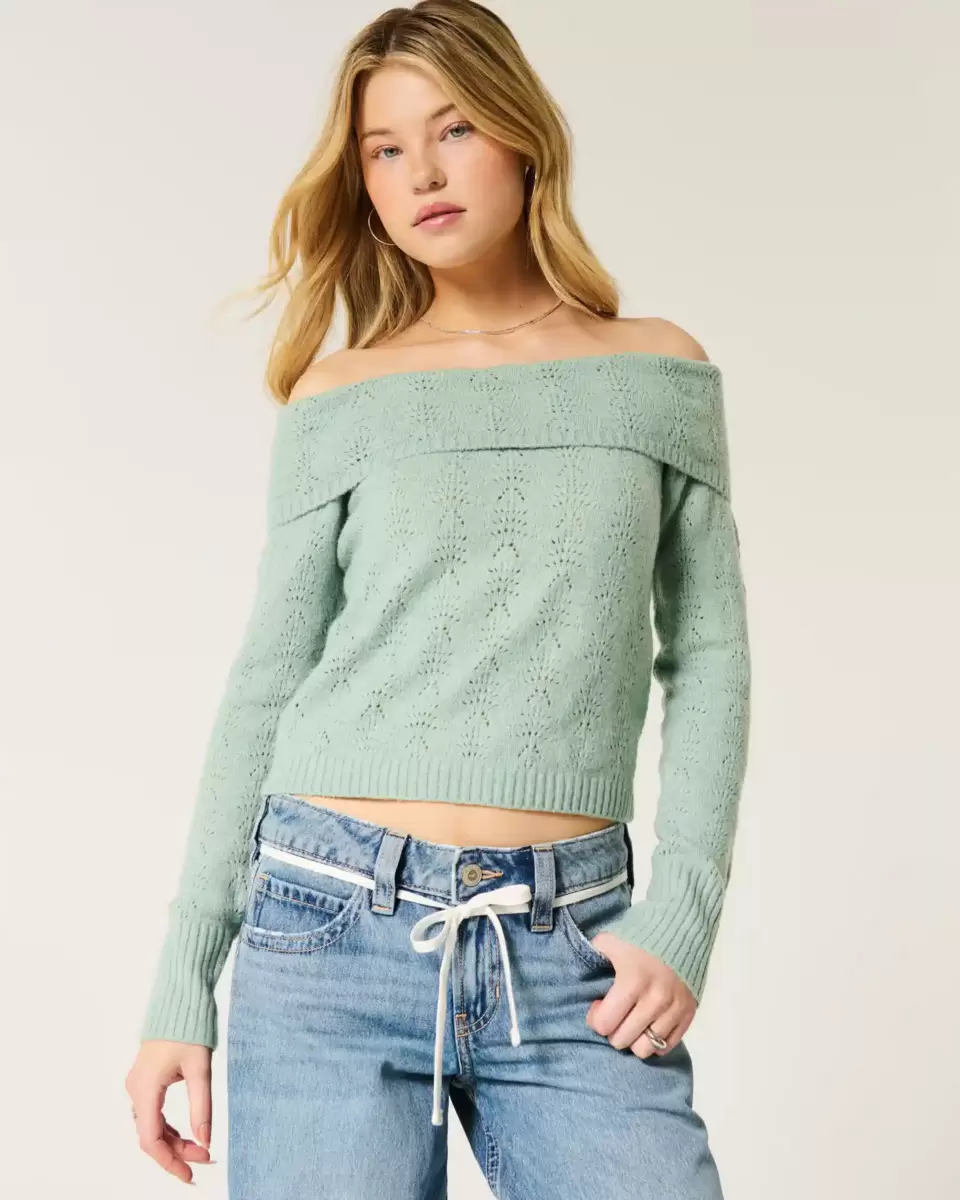Made with our super soft and cozy Comfy Cloud fabric with stitchy texture, this cute sweater features a foldover off-the-shoulder neckline and long sleeves. Ribbed trims. Slim Fit. Imported.