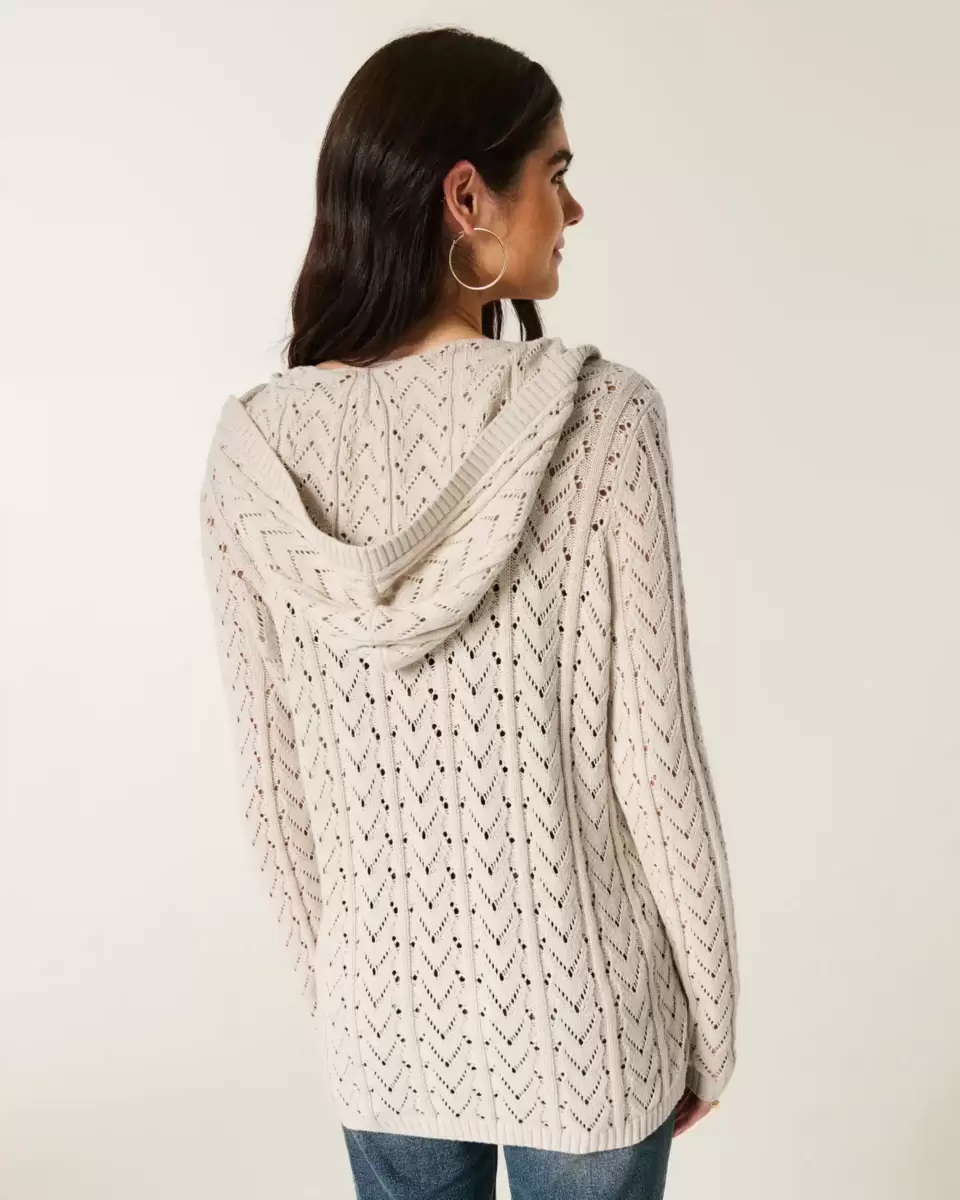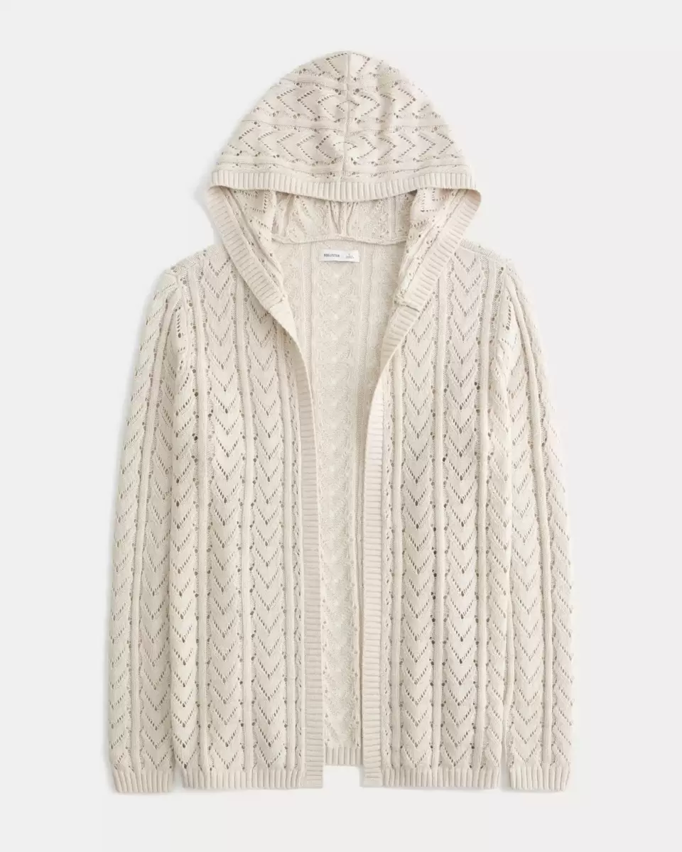 A cozy and super soft hooded cardigan with stitchy patterns and ribbed trims. No closure, long sleeves. Slim Fit. Imported.