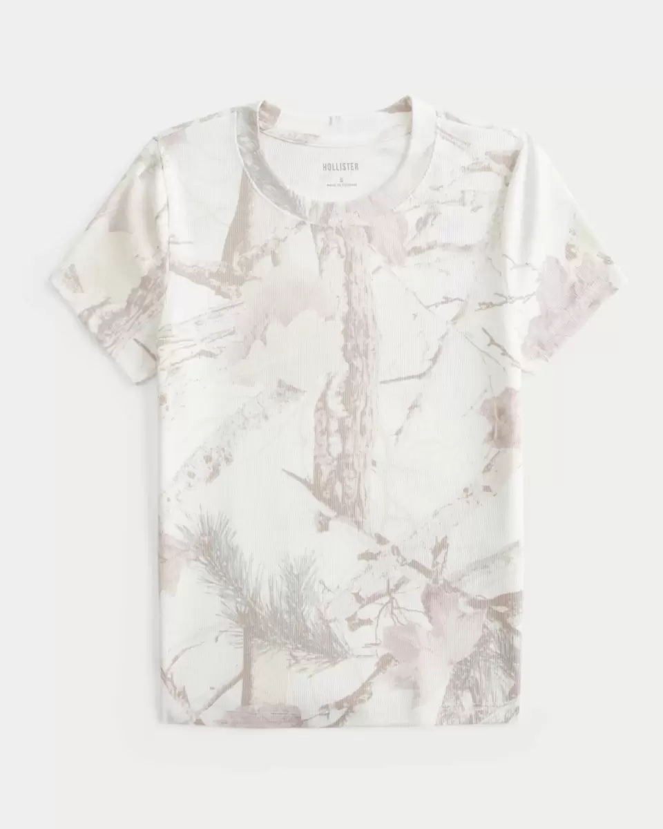 This cute, super soft baby tee is designed with a slightly shrunken silhouette and features an all-over camo pattern. Crew neckline, short sleeves. Imported.