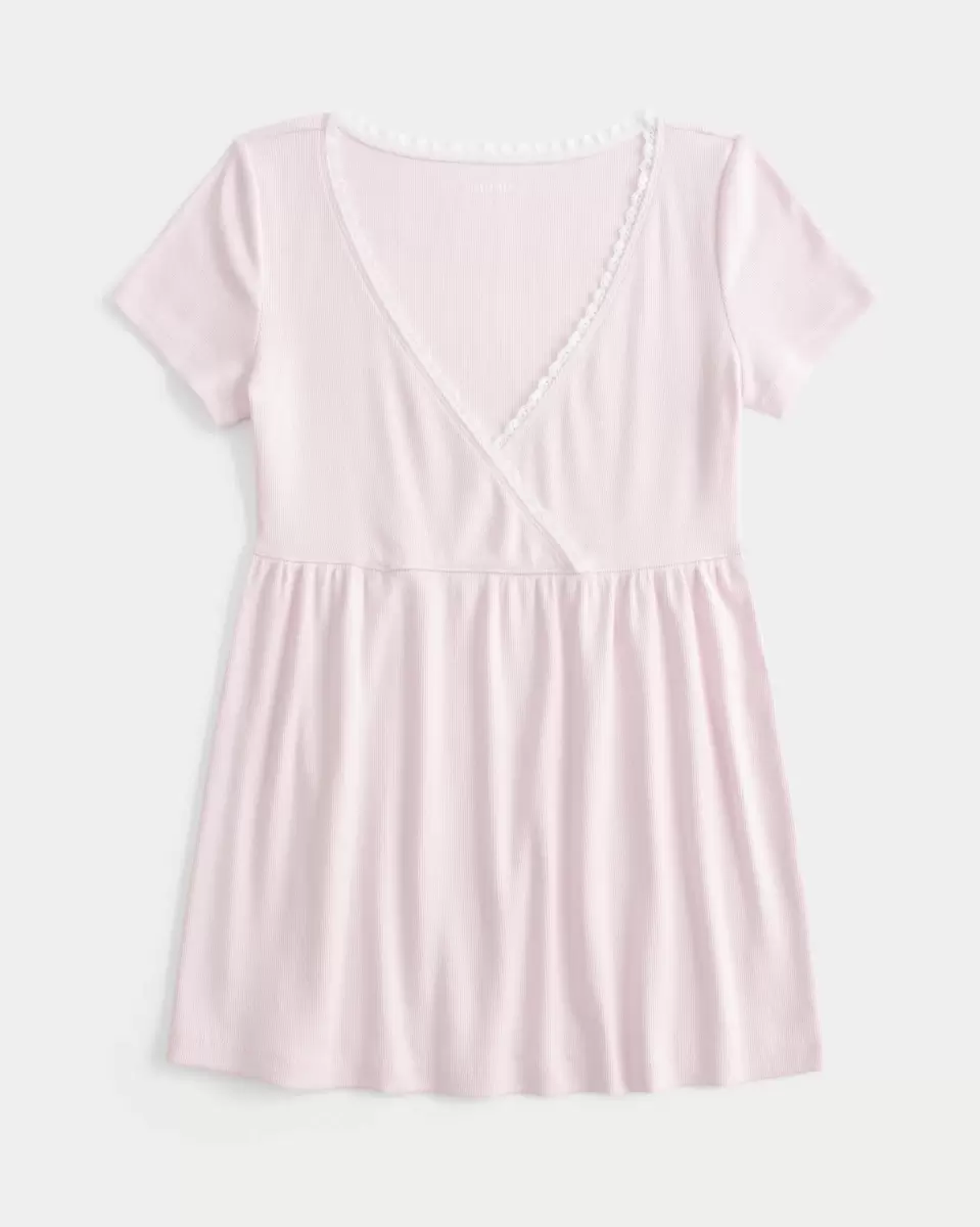 Flowy and super soft, this babydoll top features pretty lace trim along the neckline and a drapey hem. V-neckline, short sleeves. Easy Fit. Imported.