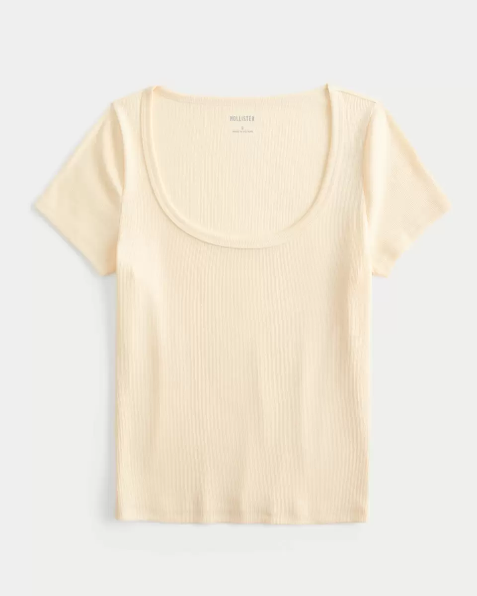 A super soft and comfy t-shirt with a scoop neckline and short sleeves. Imported.