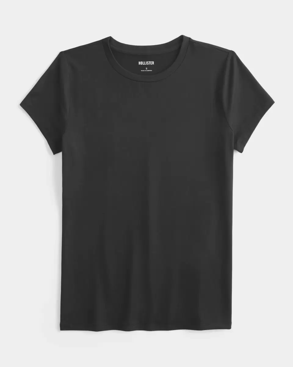 A cute and comfy baby tee in super soft fabric with a seamless look and feel, designed with a slightly shrunken silhouette. Crew neckline, short sleeves. Imported.