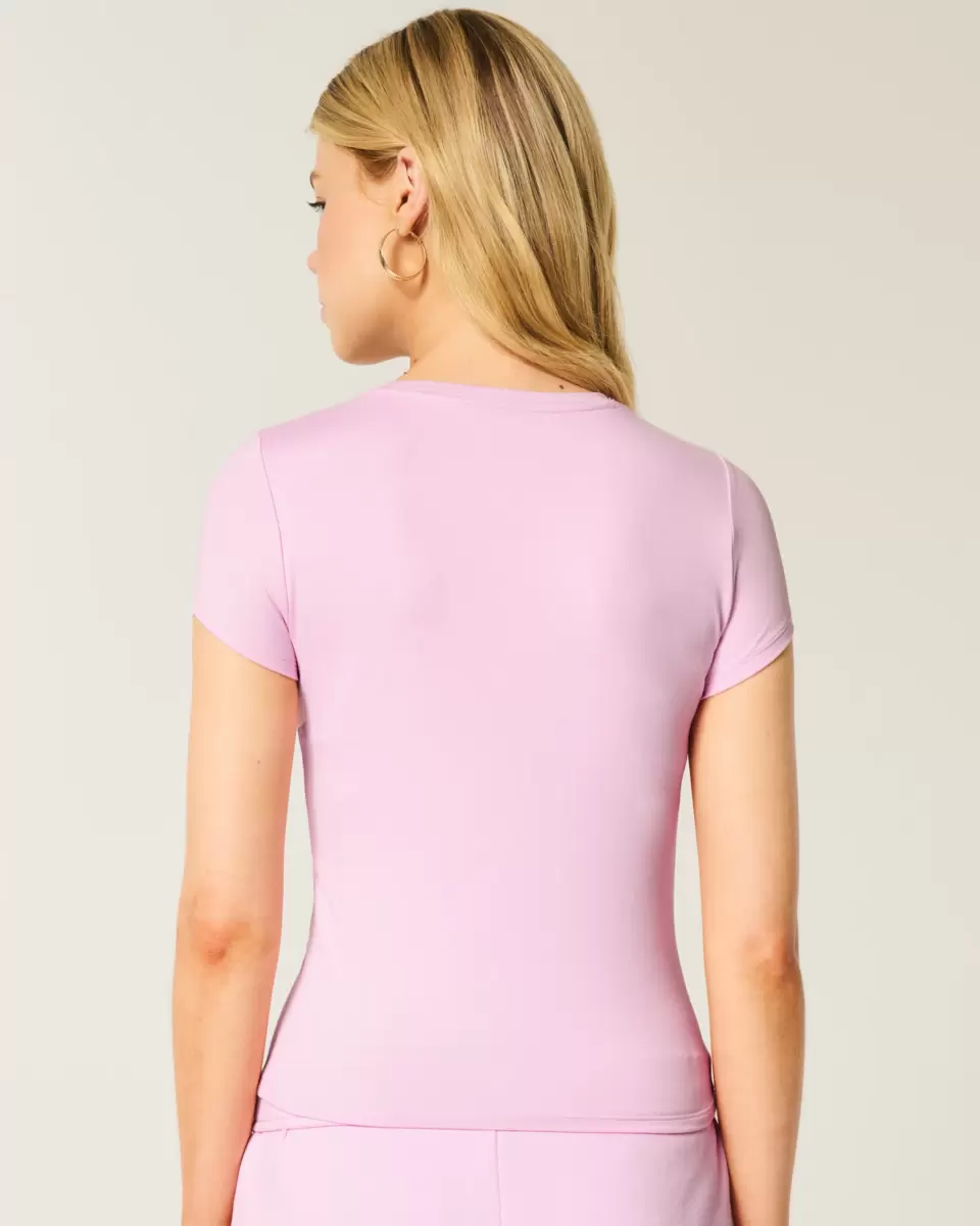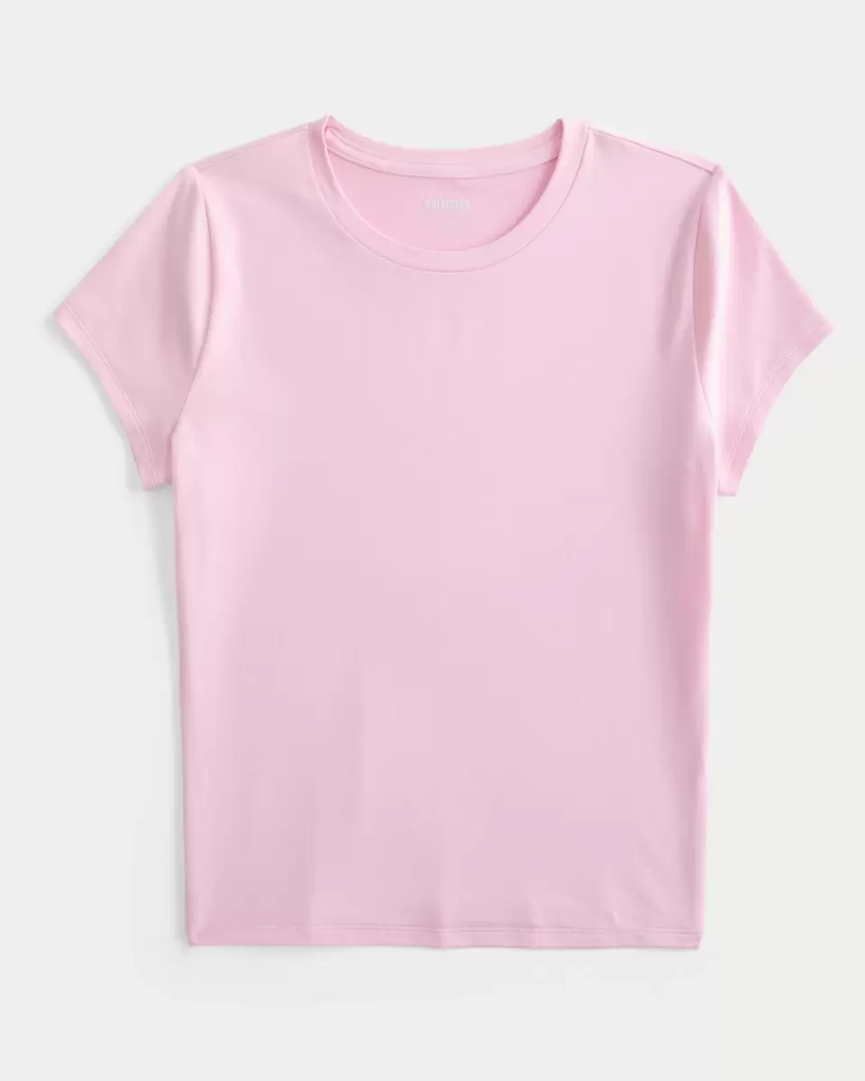 This cute and comfy baby tee is made with soft stretch fabric with a seamless look and feel. Slightly shrunken silhouette, crew neckline, short sleeves. Slim Fit.