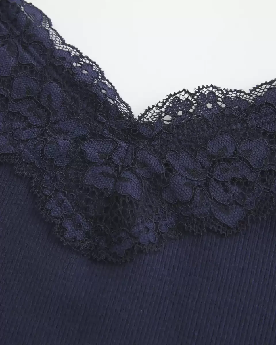 Pretty and super soft, this Y2K-inspired cami features lace trim at the neckline and hem. Adjustable straps. Slim Fit.